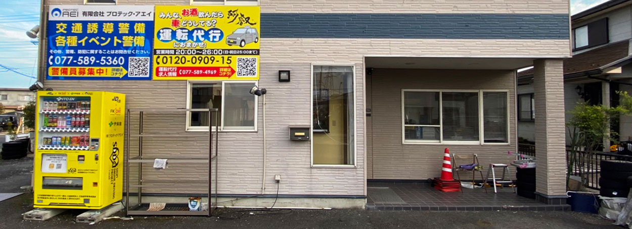プロテック・アエイは、父が創業した建設会社「阿叡重建」を前身に、昼は警備、夜は運転代行で地域の皆様の暮らしをお守りして参りました。「運転代行」の言葉がまだ滋賀県に浸透していない頃から業務を始め、今ではたくさんの方に当社のサービスをお選びいただけるようになったのも、皆様に支えられ、育てていただいたおかげと厚く感謝しております。